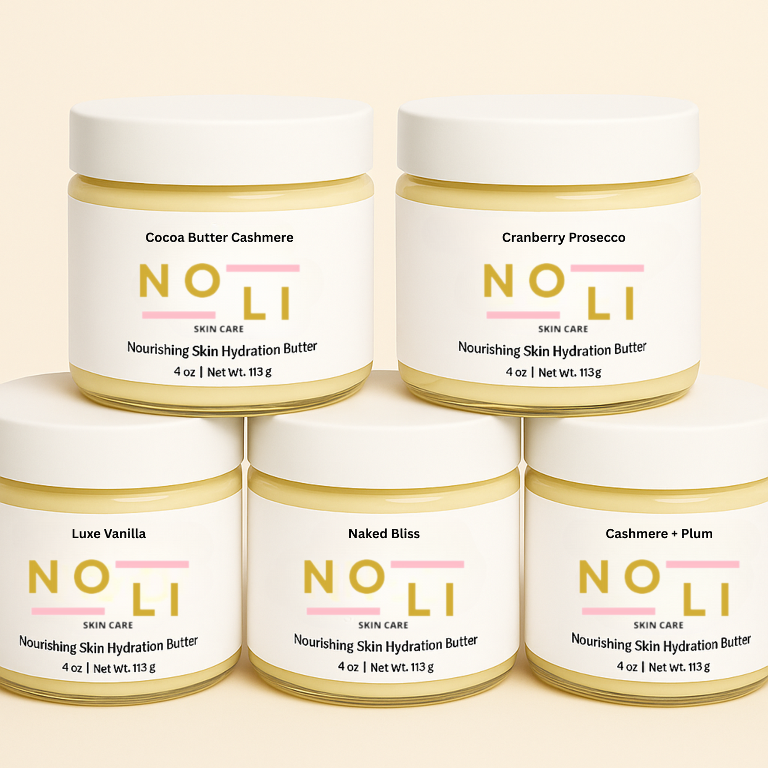 The Noli Five is your signature scent set — five full-size butters crafted to hydrate deeply, smell incredible, and never include coconut, shea, or cocoa butter.
